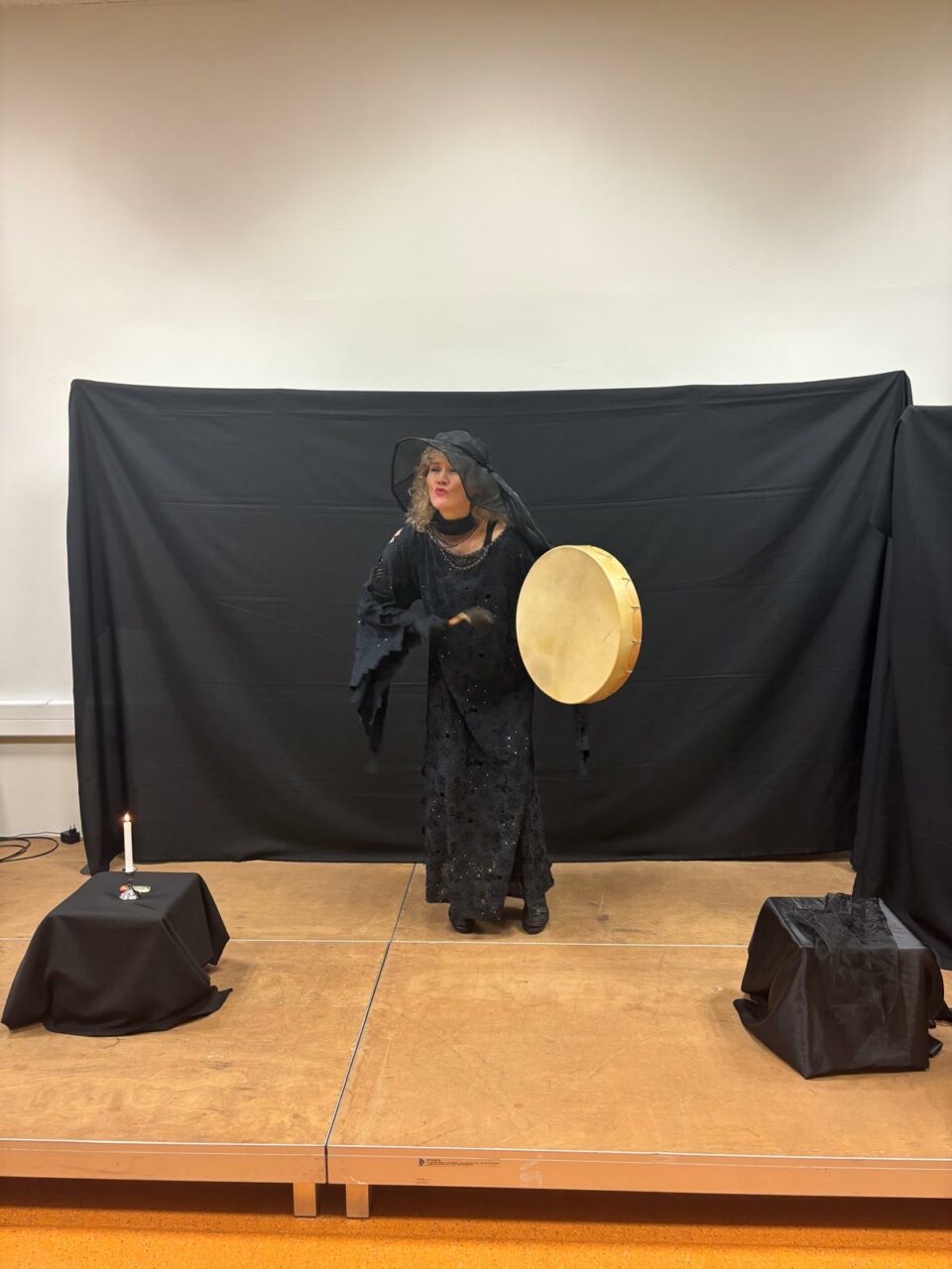 La conteuse transmet des récits d’ici et d’ailleurs, parsemés de devinettes poétiques et de paroles chantées, accompagnés pour certains d’un tambour et toujours en lien avec des objets qui participent à eux seuls au décor. Ce rendez-vous conte permet de nourrir l’imaginaire autour des sorcières tout en déconstruisant certaines représentations. Un temps d’échange est prévu avec le public pour aborder la notion d’archétype et de stéréotype autour du personnage de la sorcière.